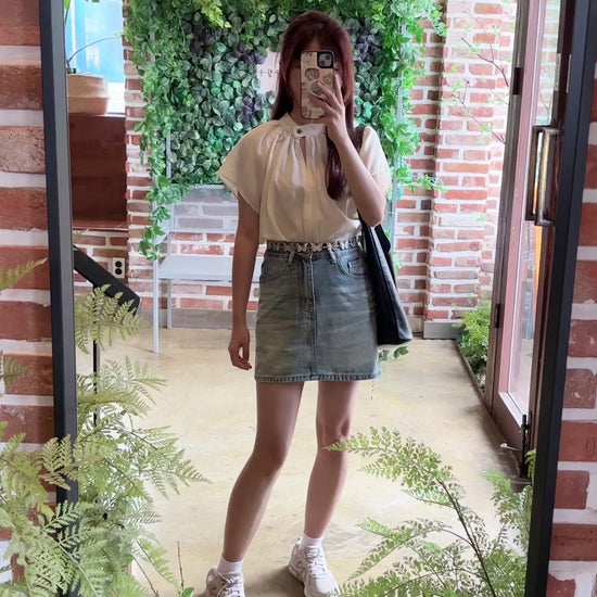 S00016 人手必備洗水白牛仔短裙