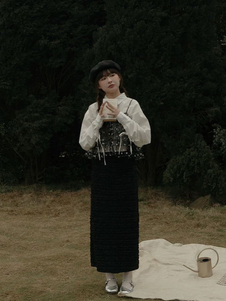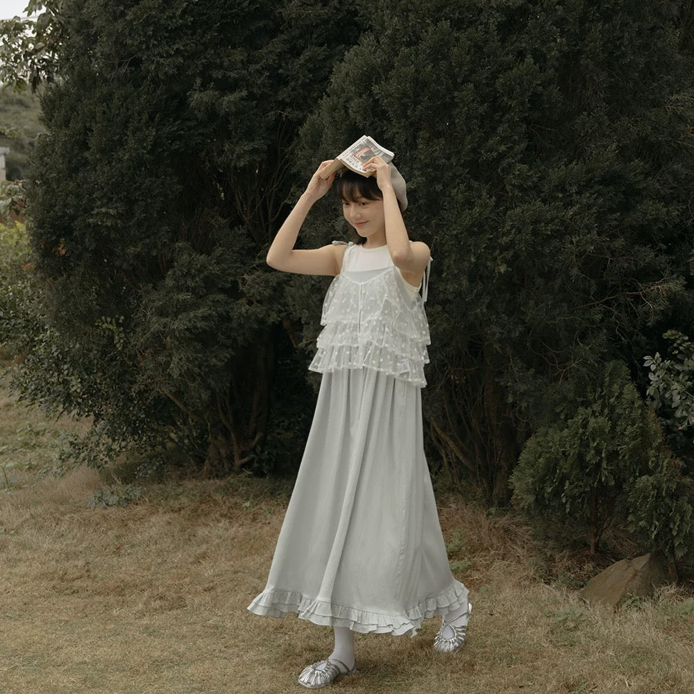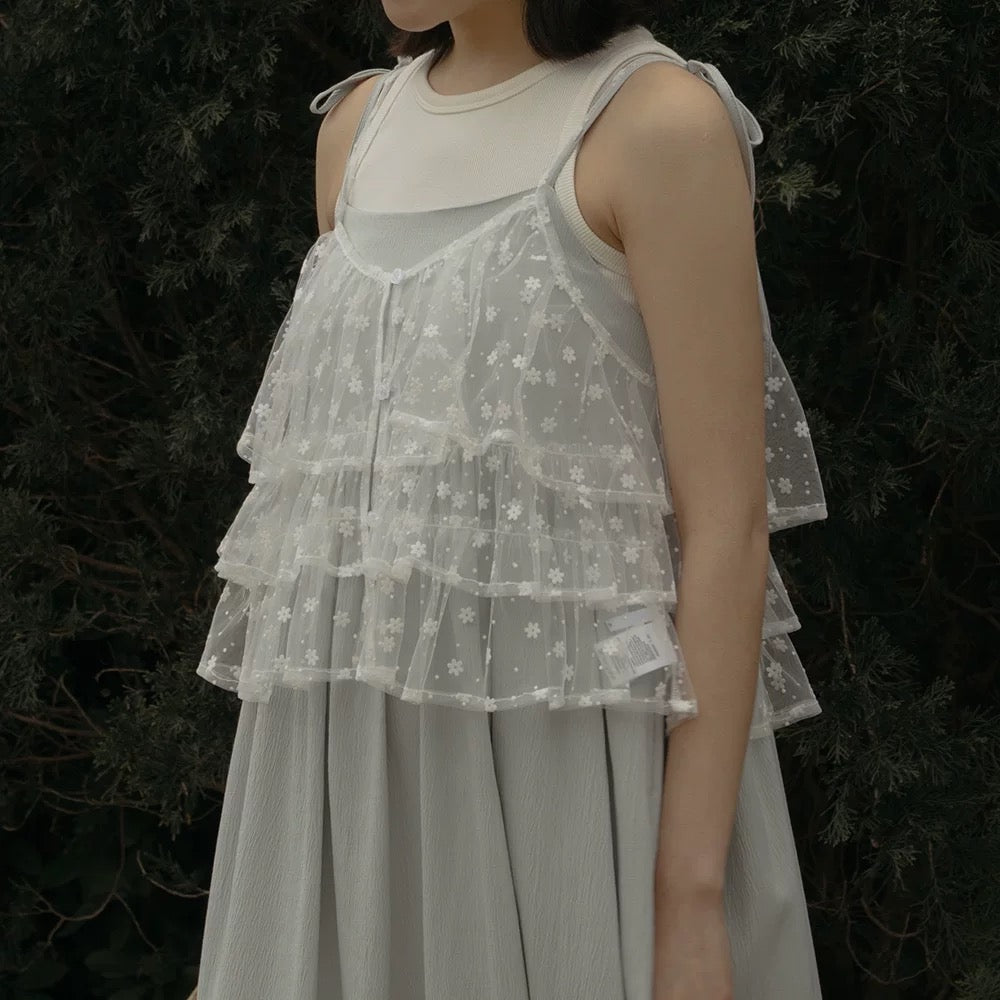 多層荷葉透透紗質外搭 T00090