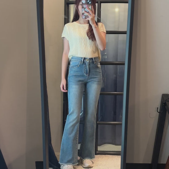 S00014 拉長比例蜜桃臀彈性軟熟微喇叭牛