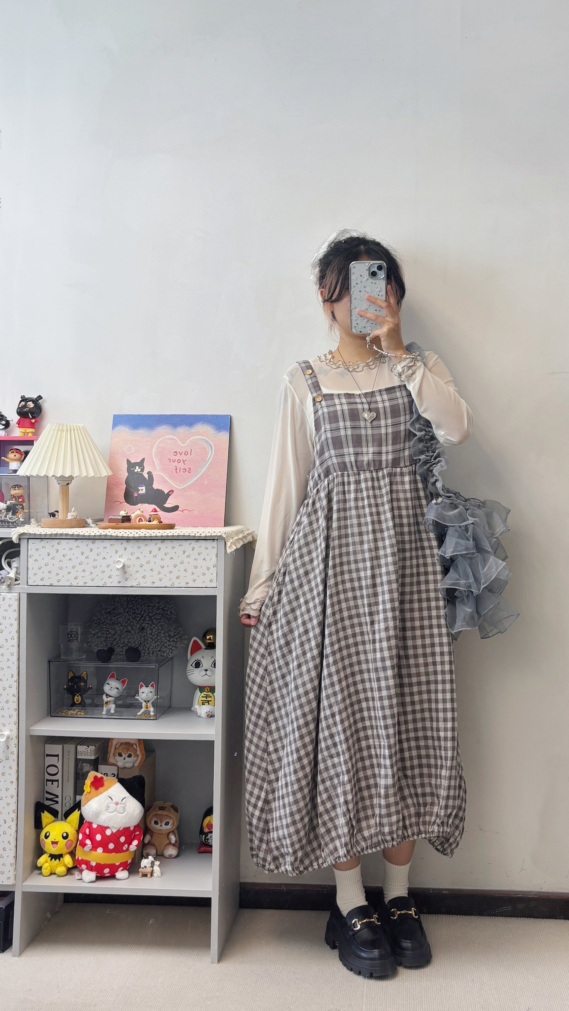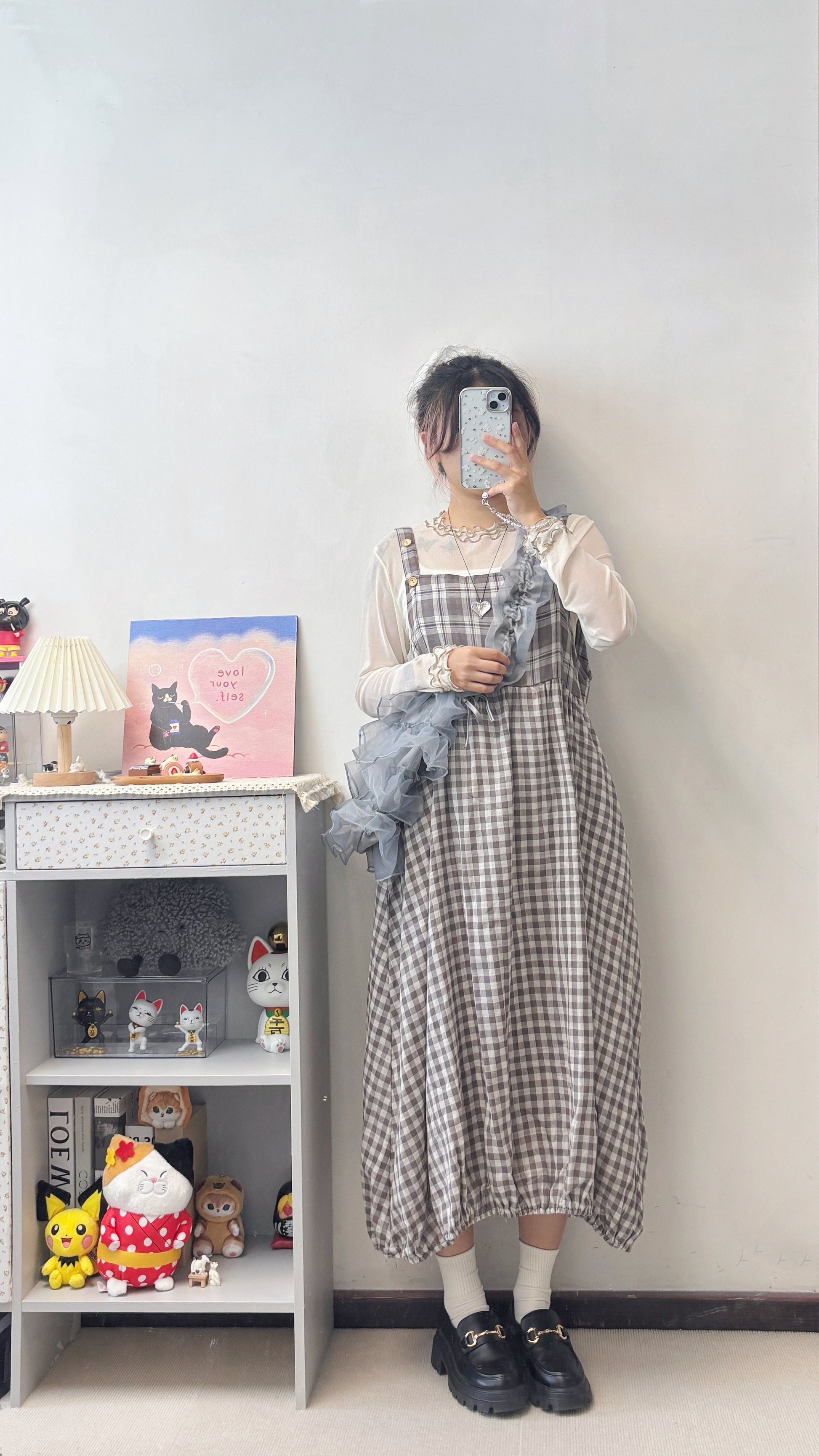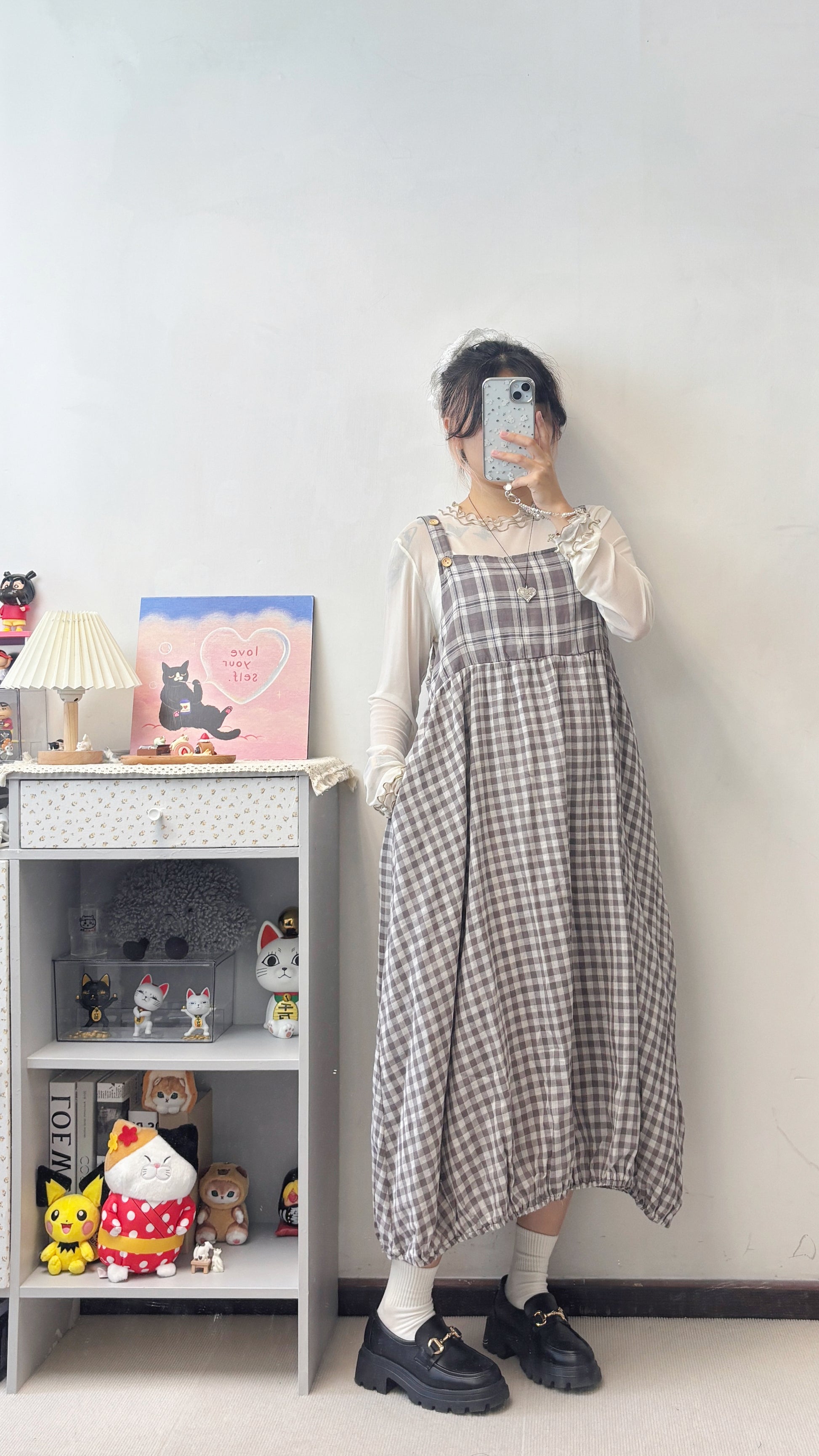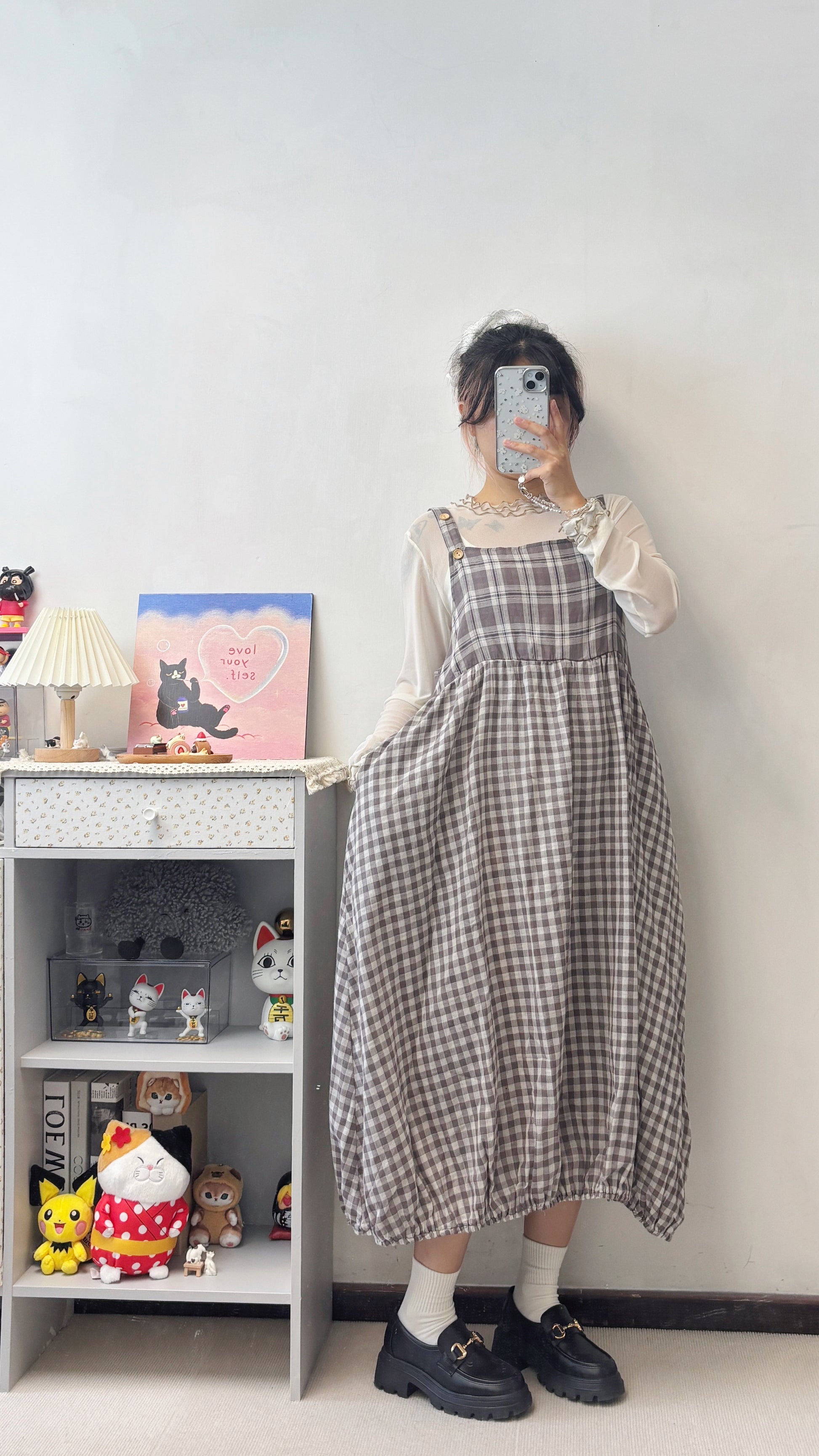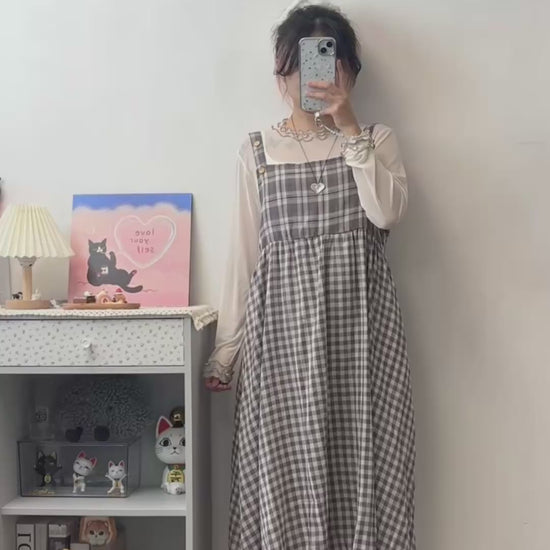 格紋泡泡連身裙 S00120