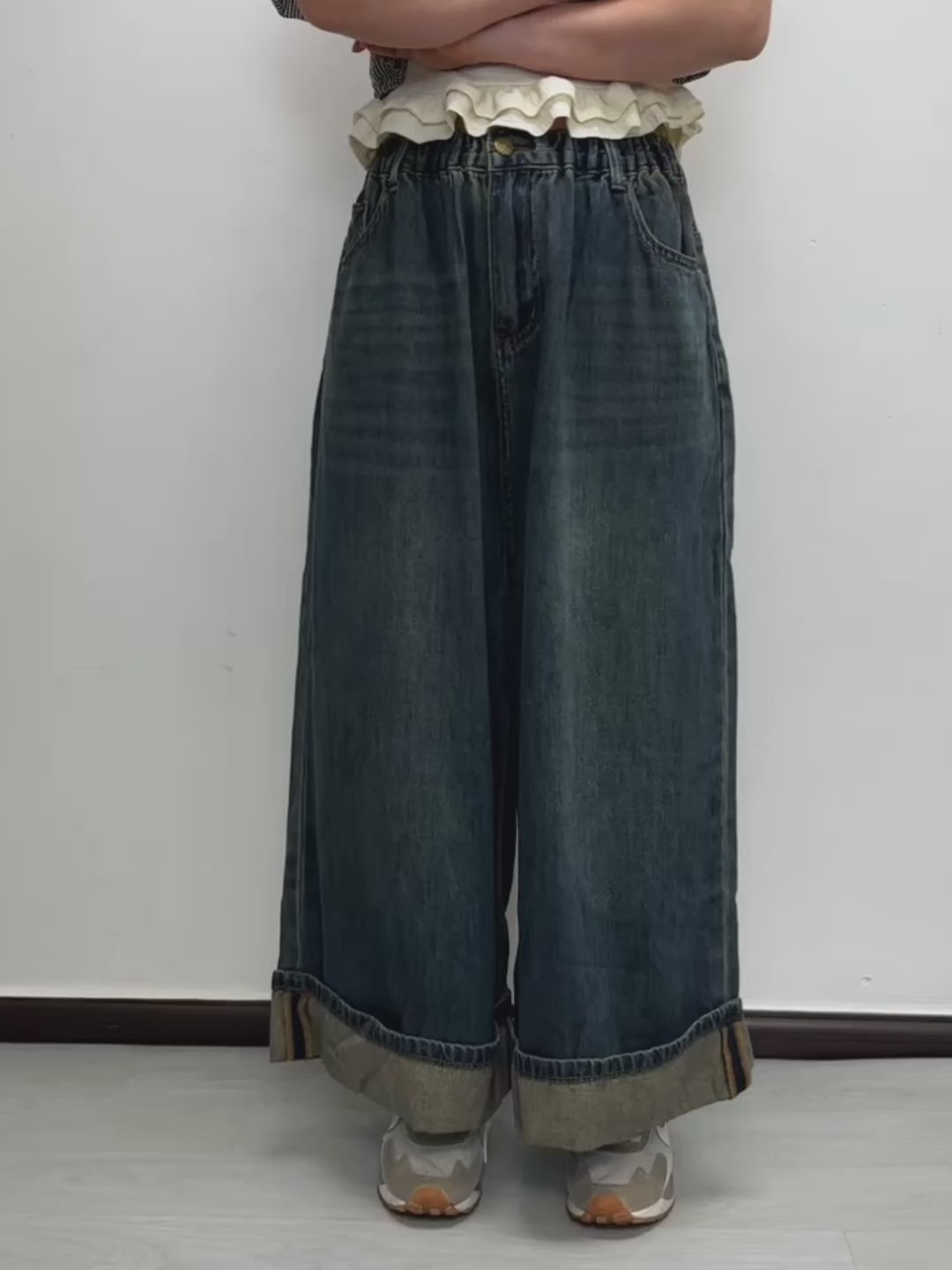 橡筋腰闊腳牛 - 150小個子ok S00085