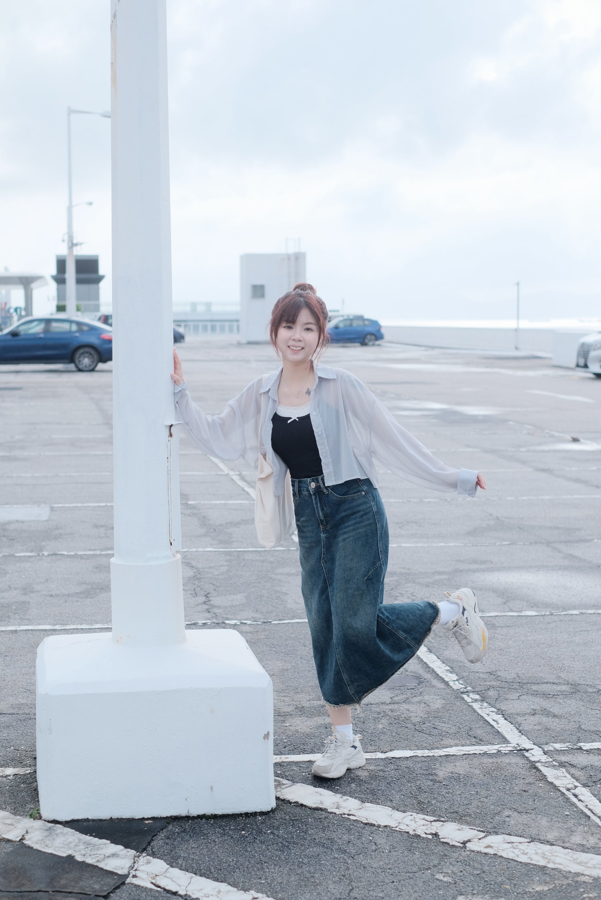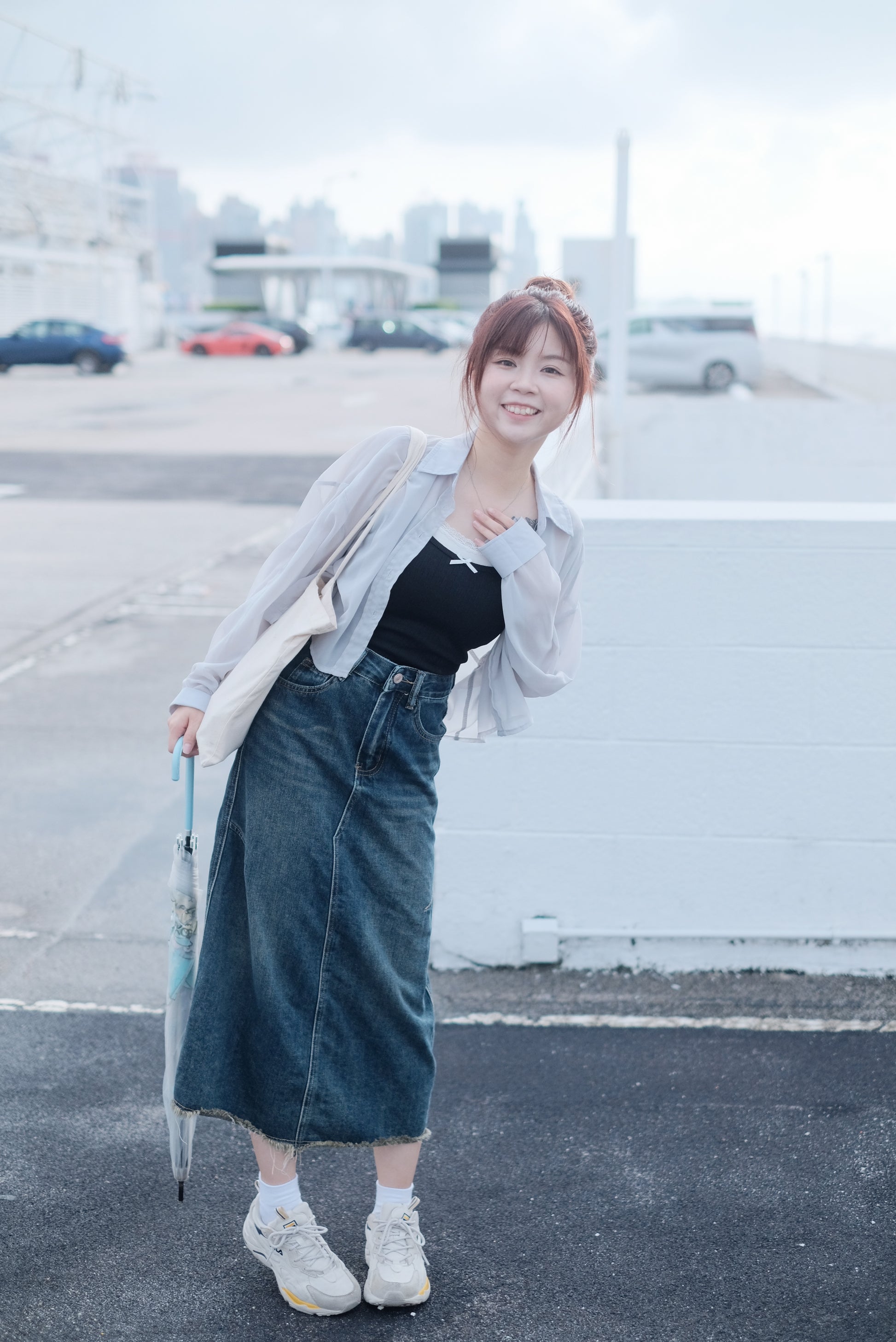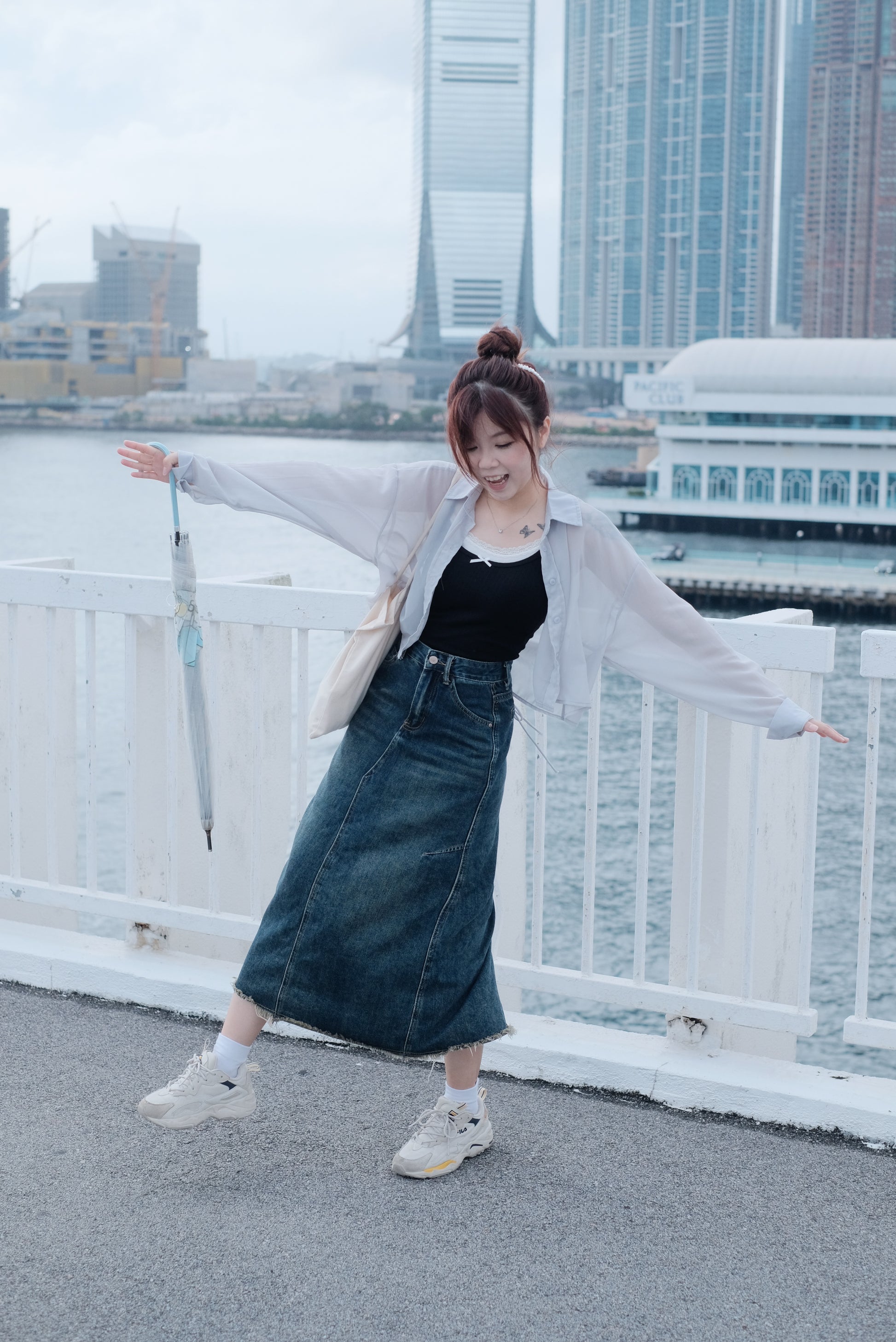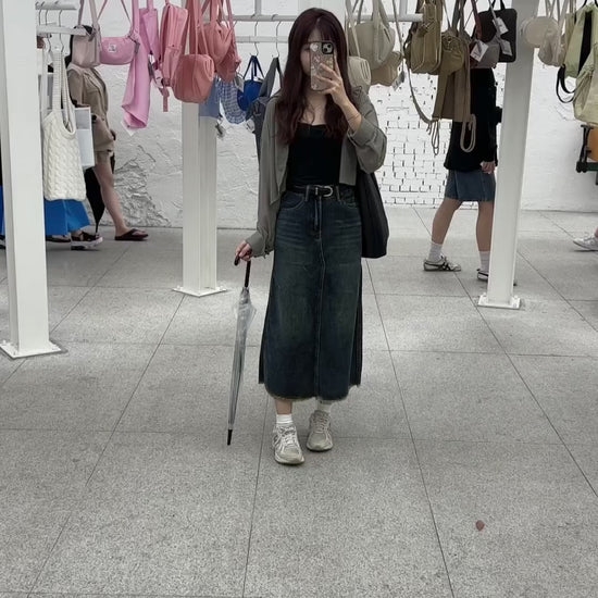S00015 深海色A line薄薄牛仔長裙(後開衩)