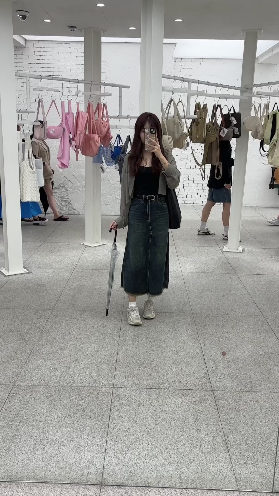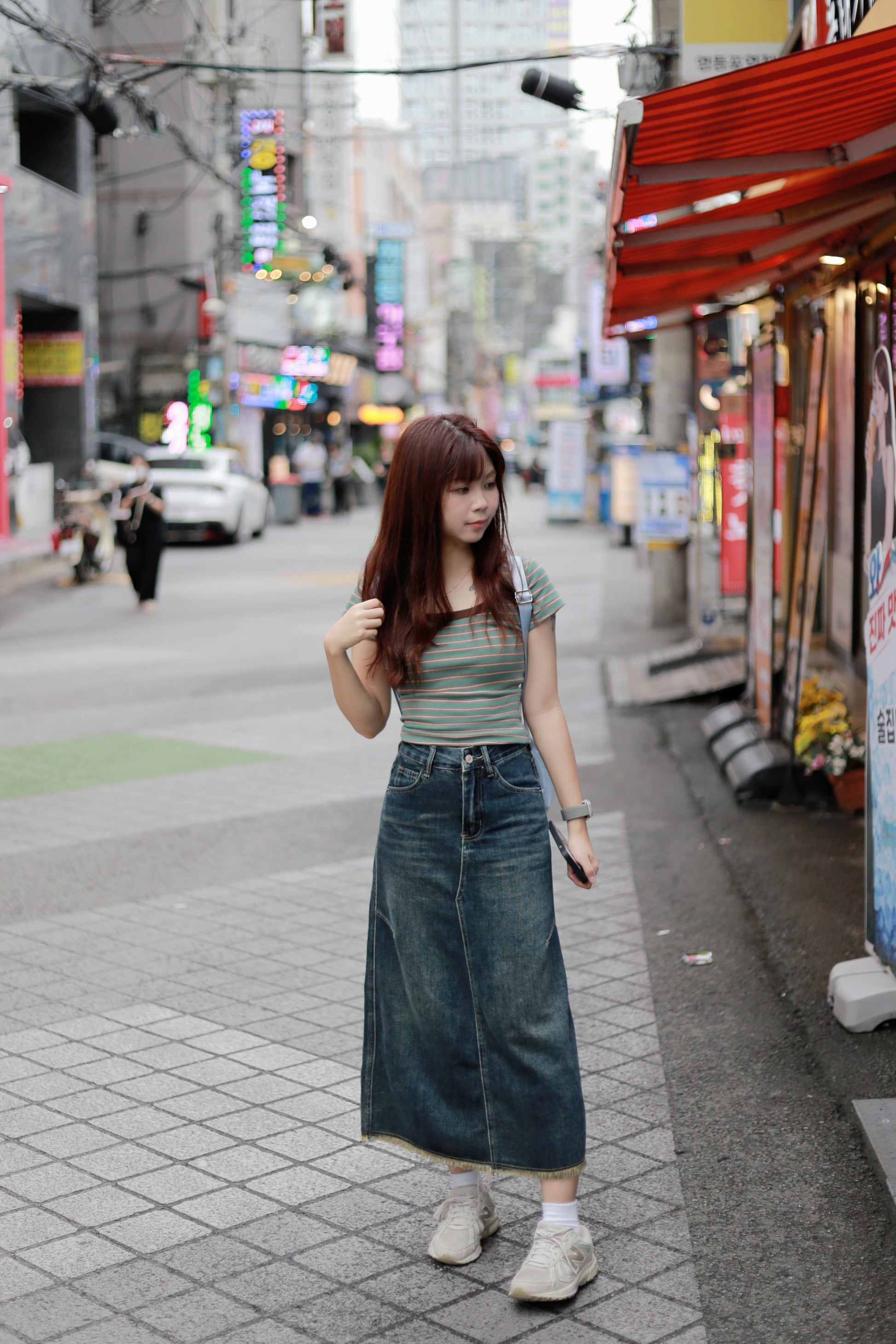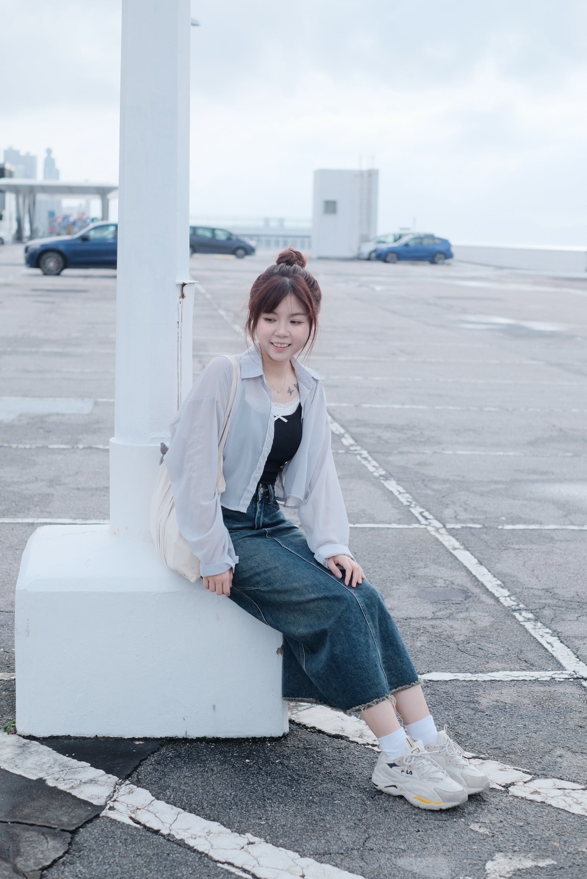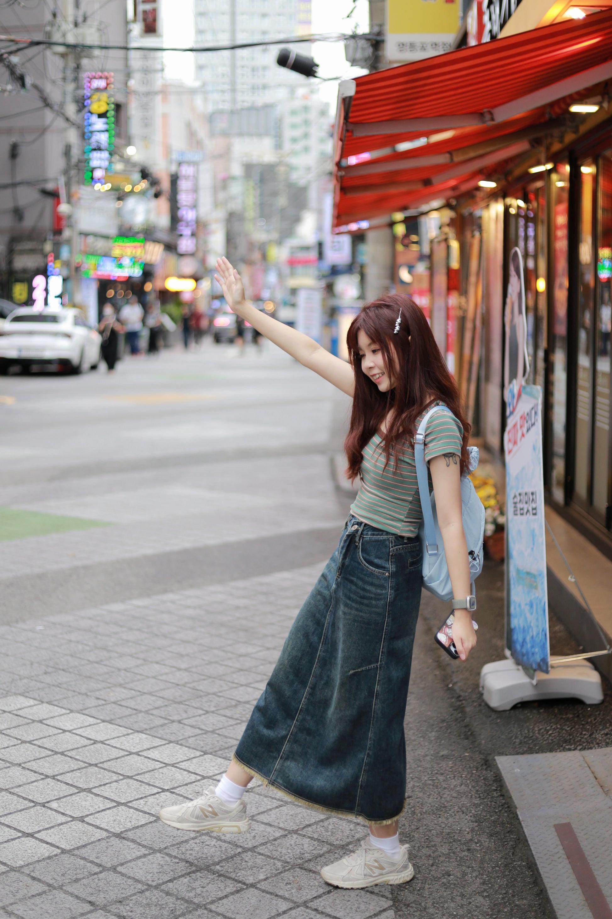 S00015 深海色A line薄薄牛仔長裙(後開衩)