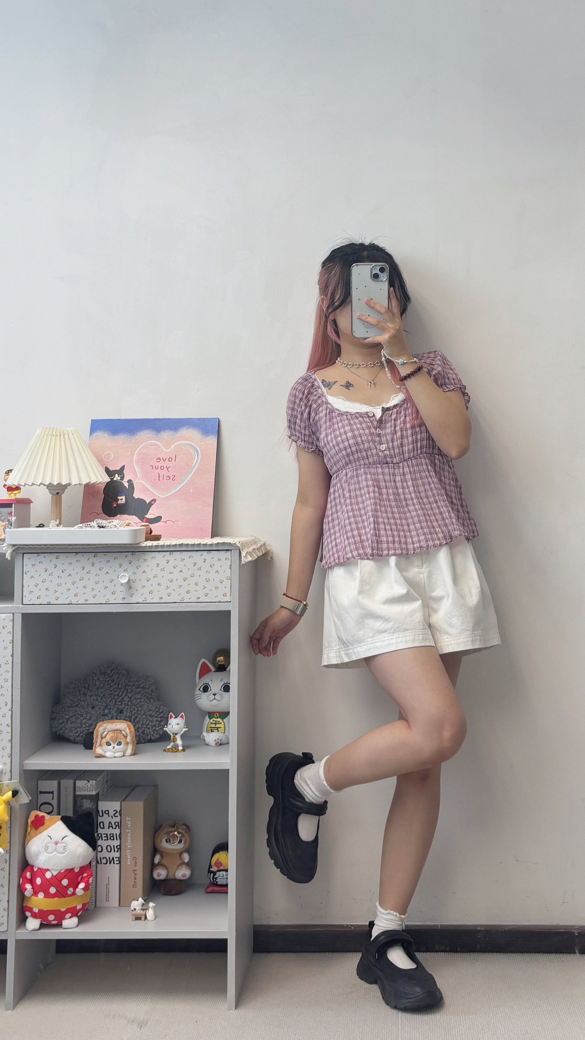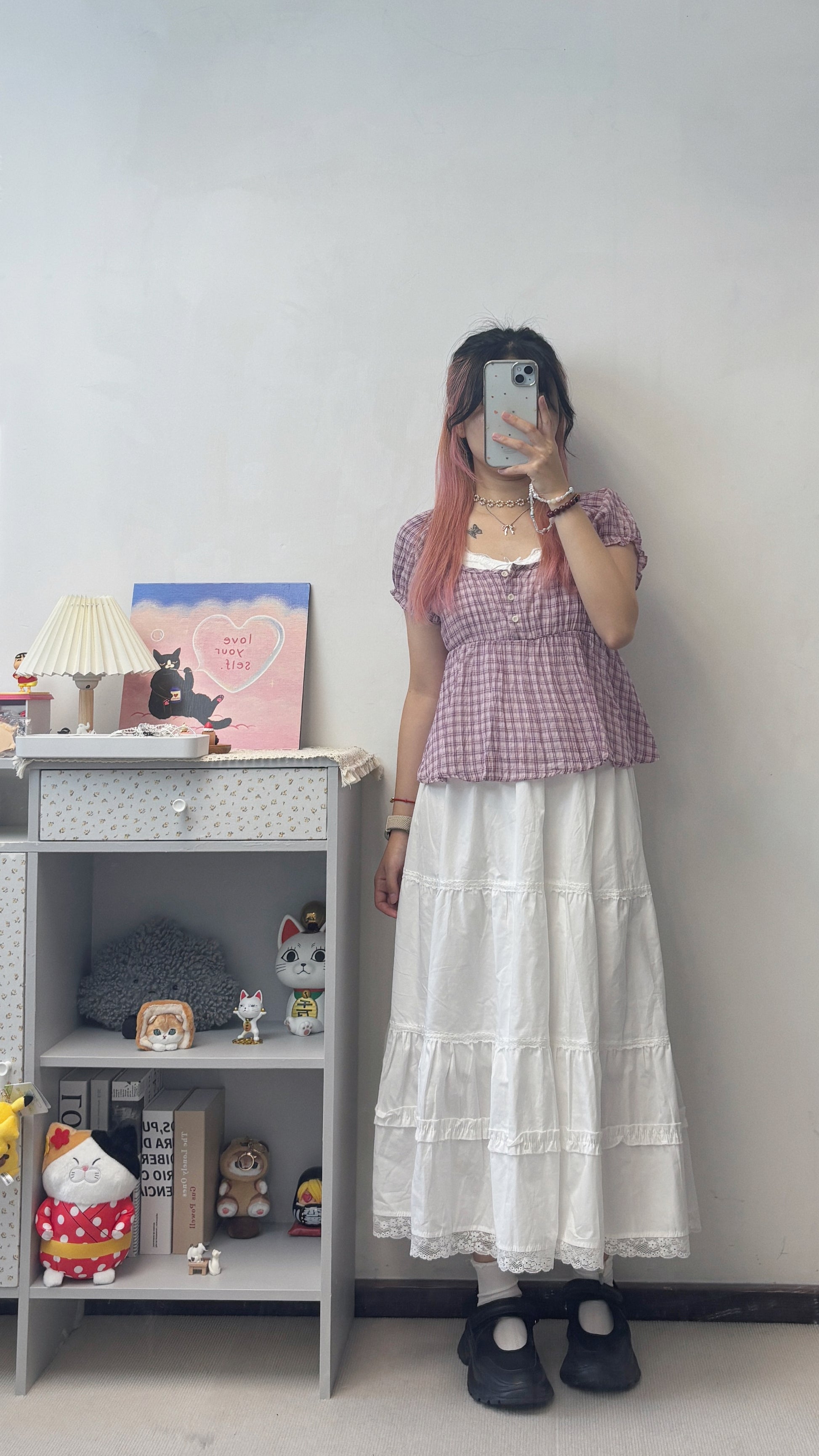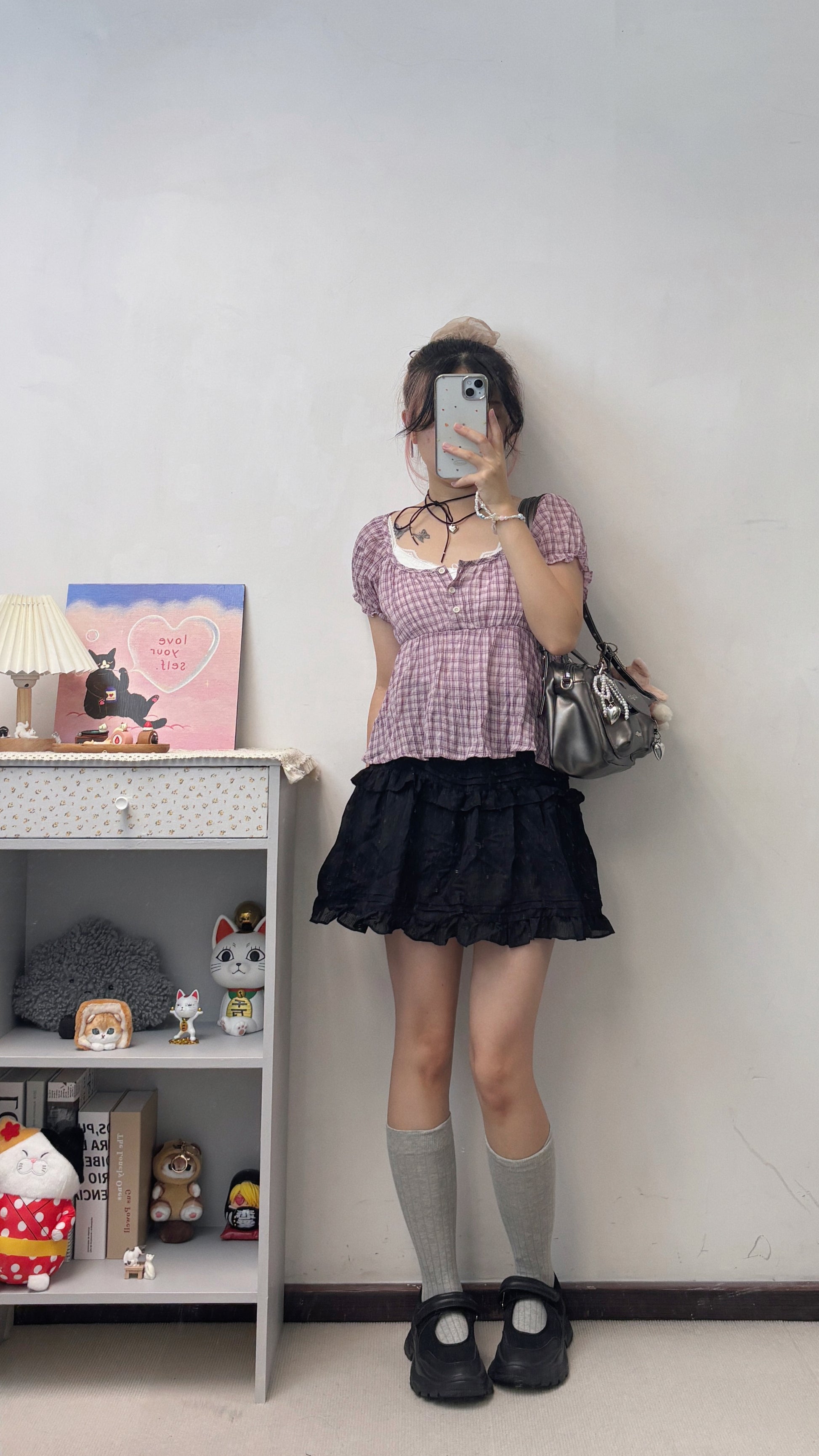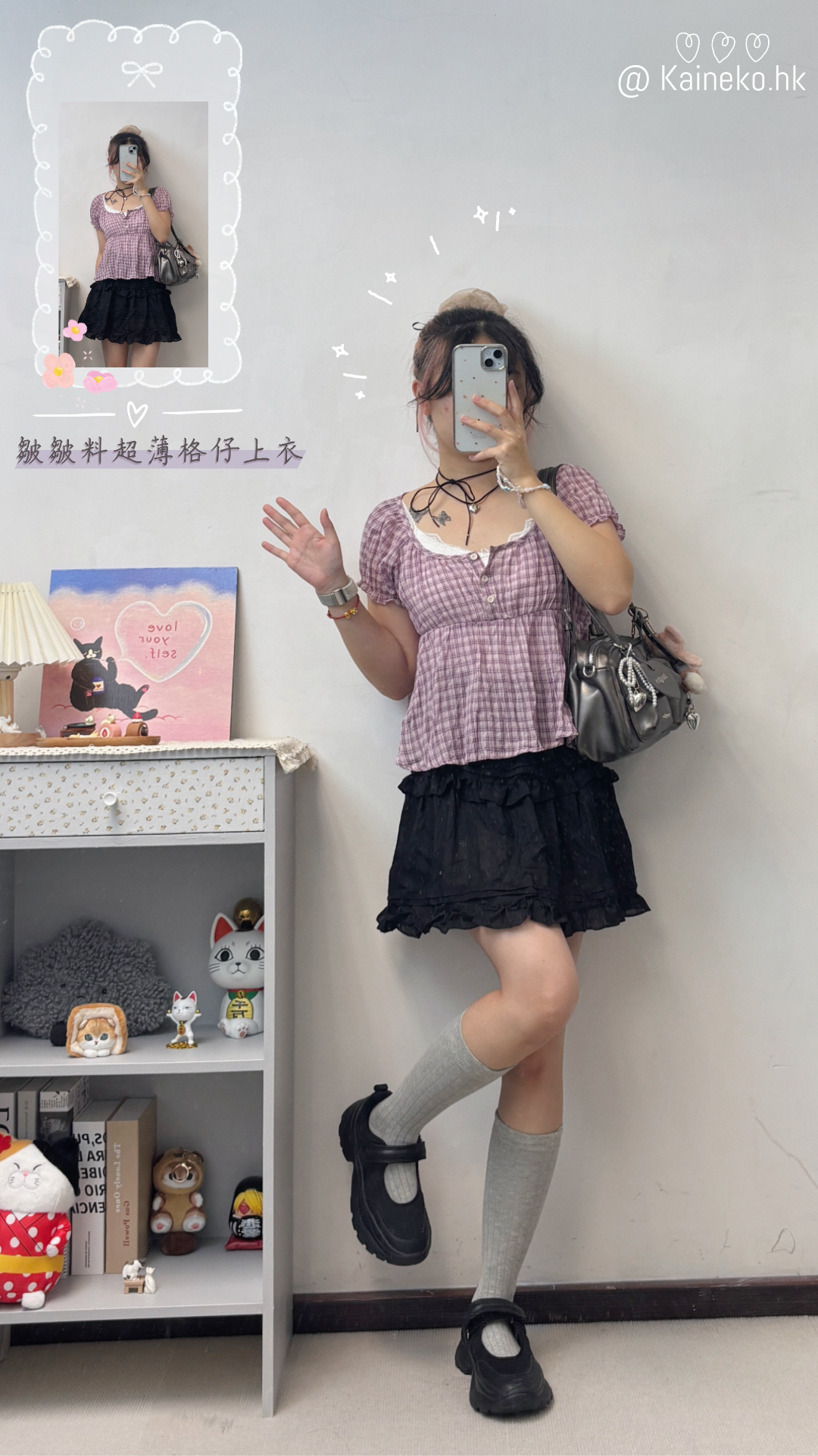 皺皺料超薄格仔上衣 T00115