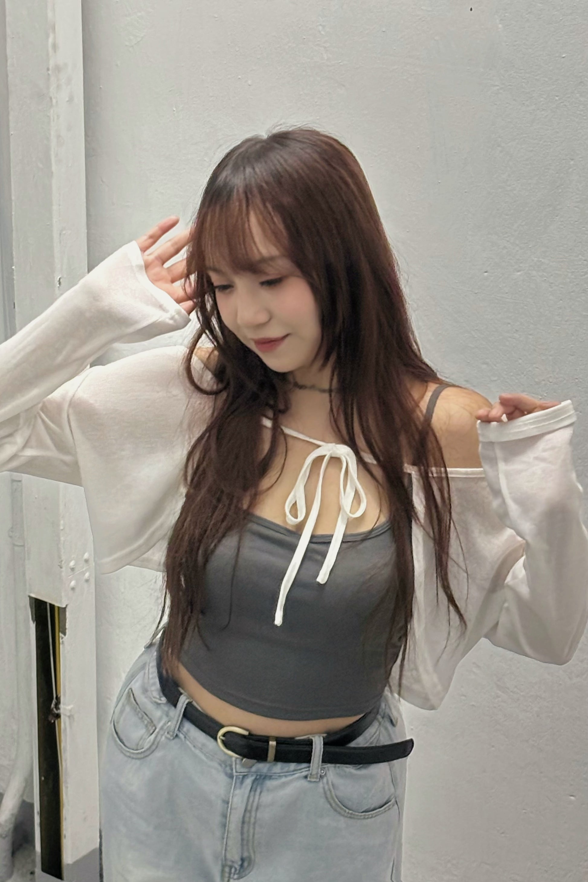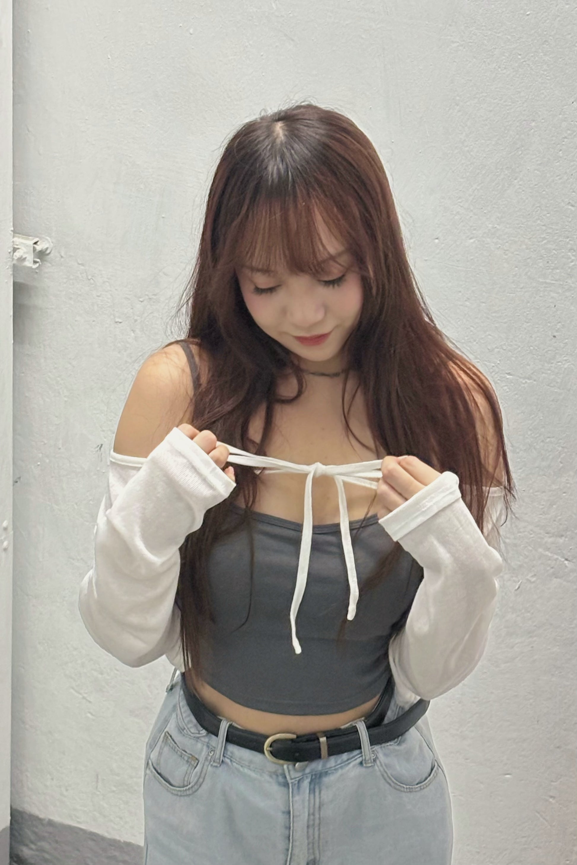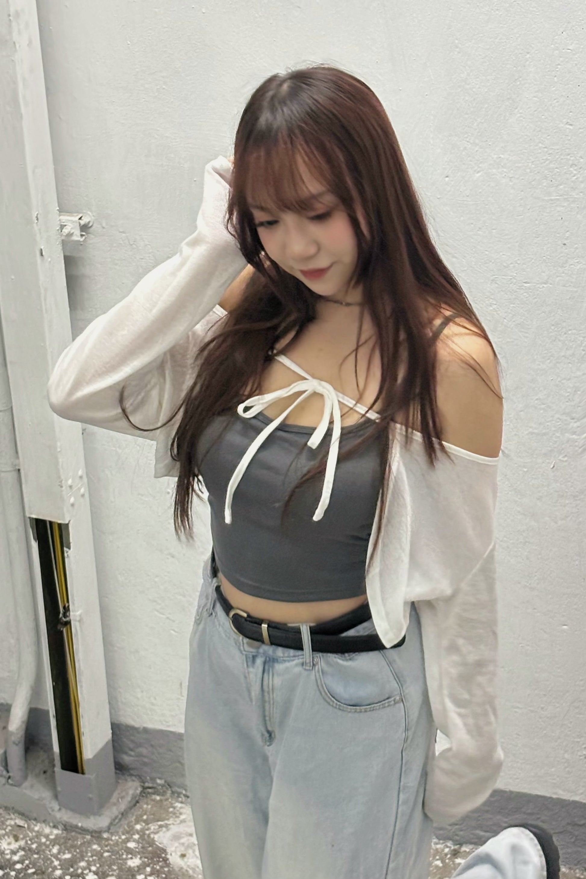綁帶薄針織短外套 C00027
