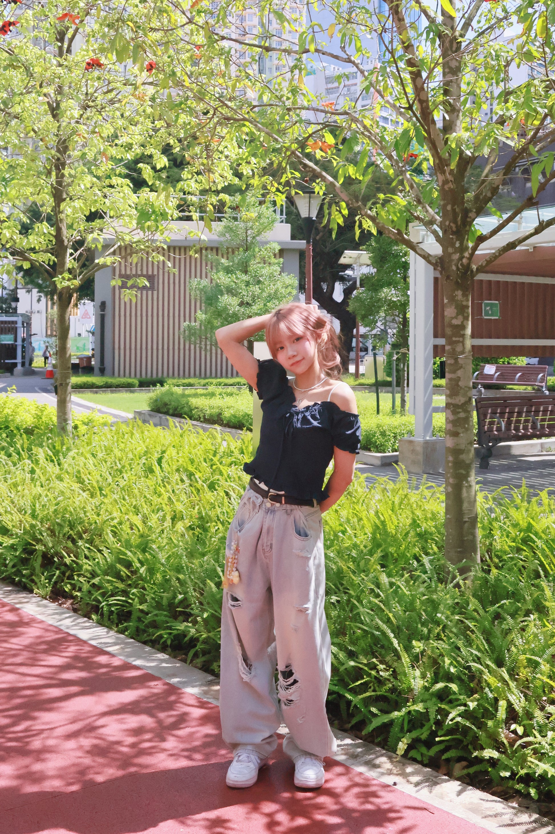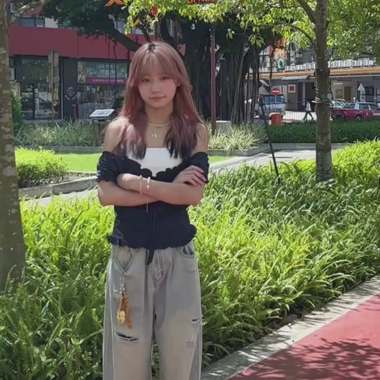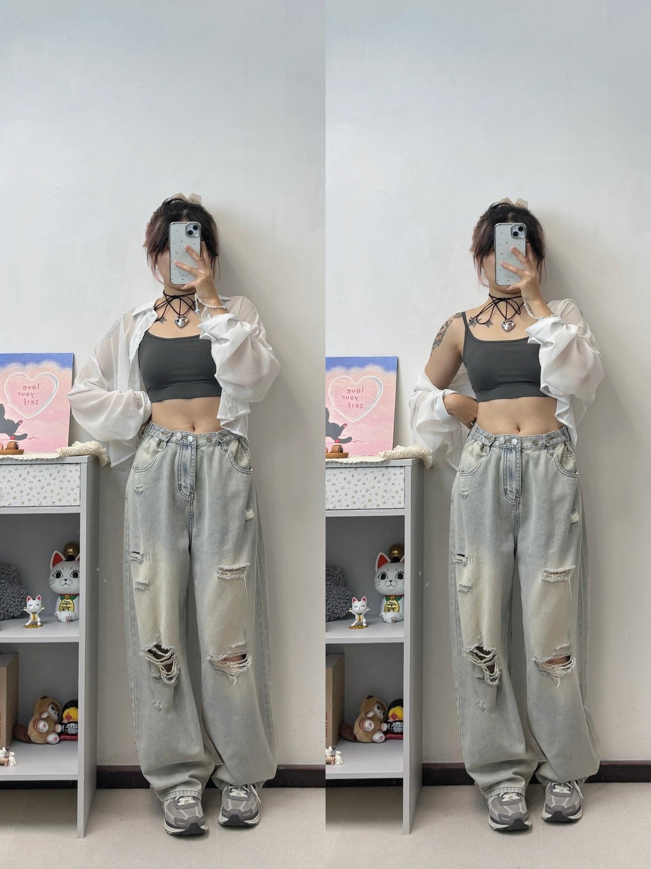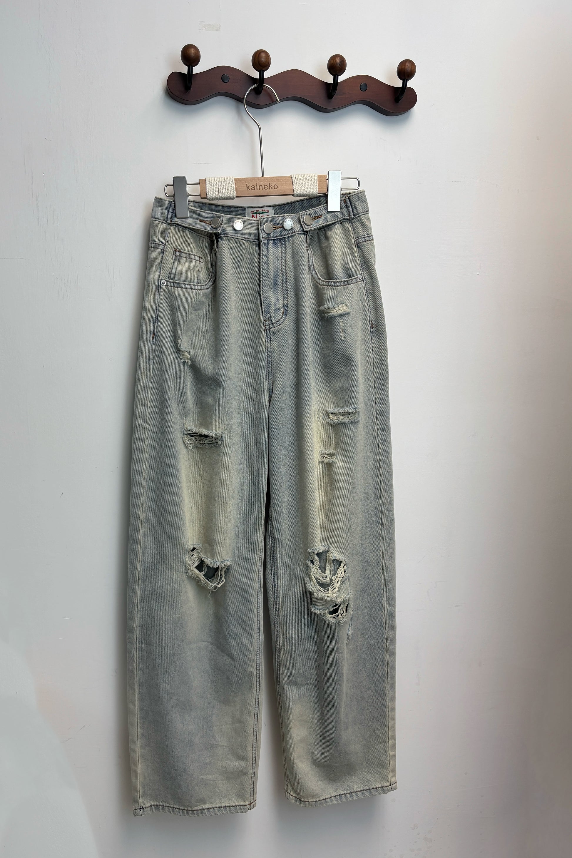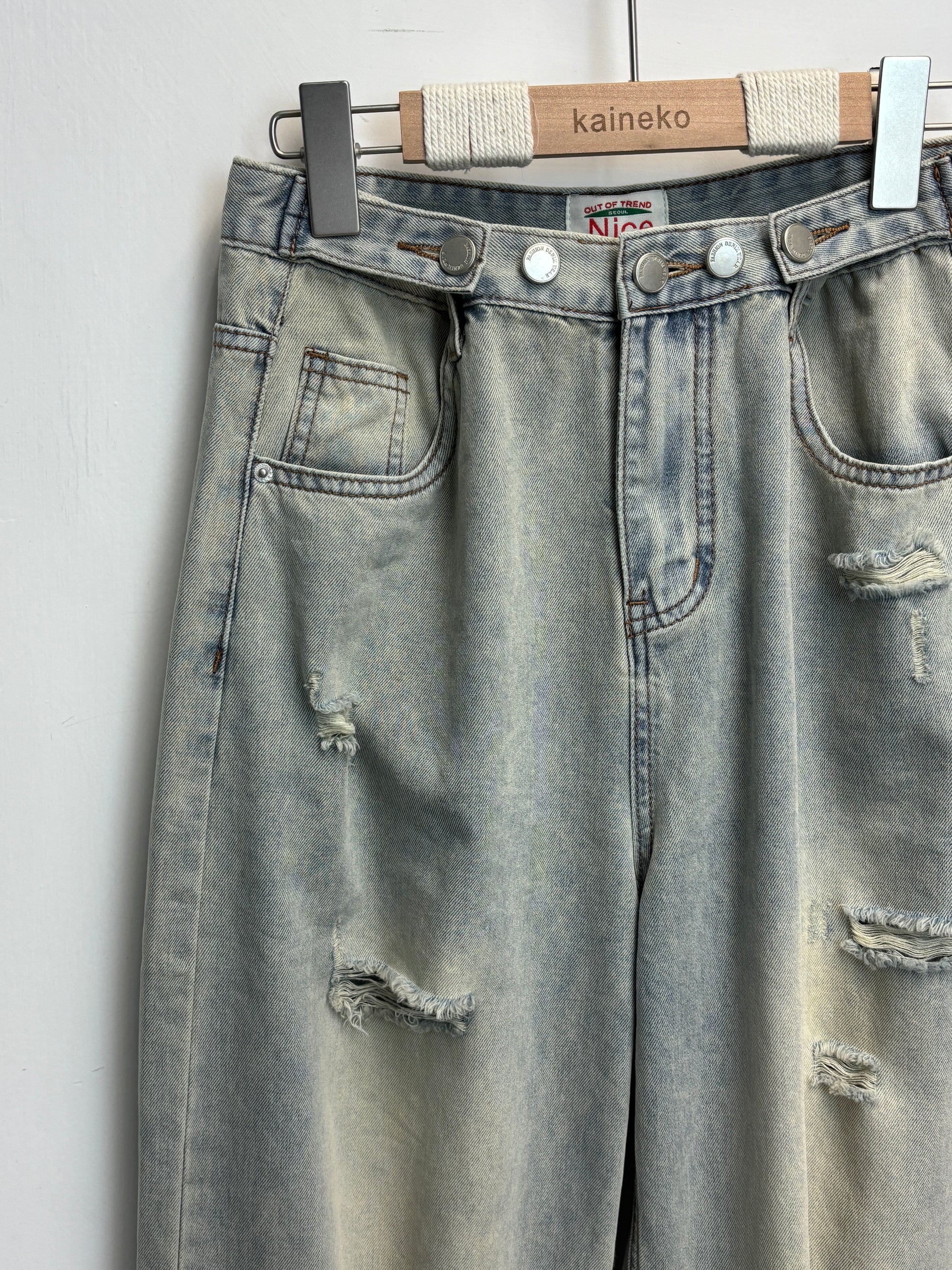 腰圍可調節破洞薄牛仔褲 S00087