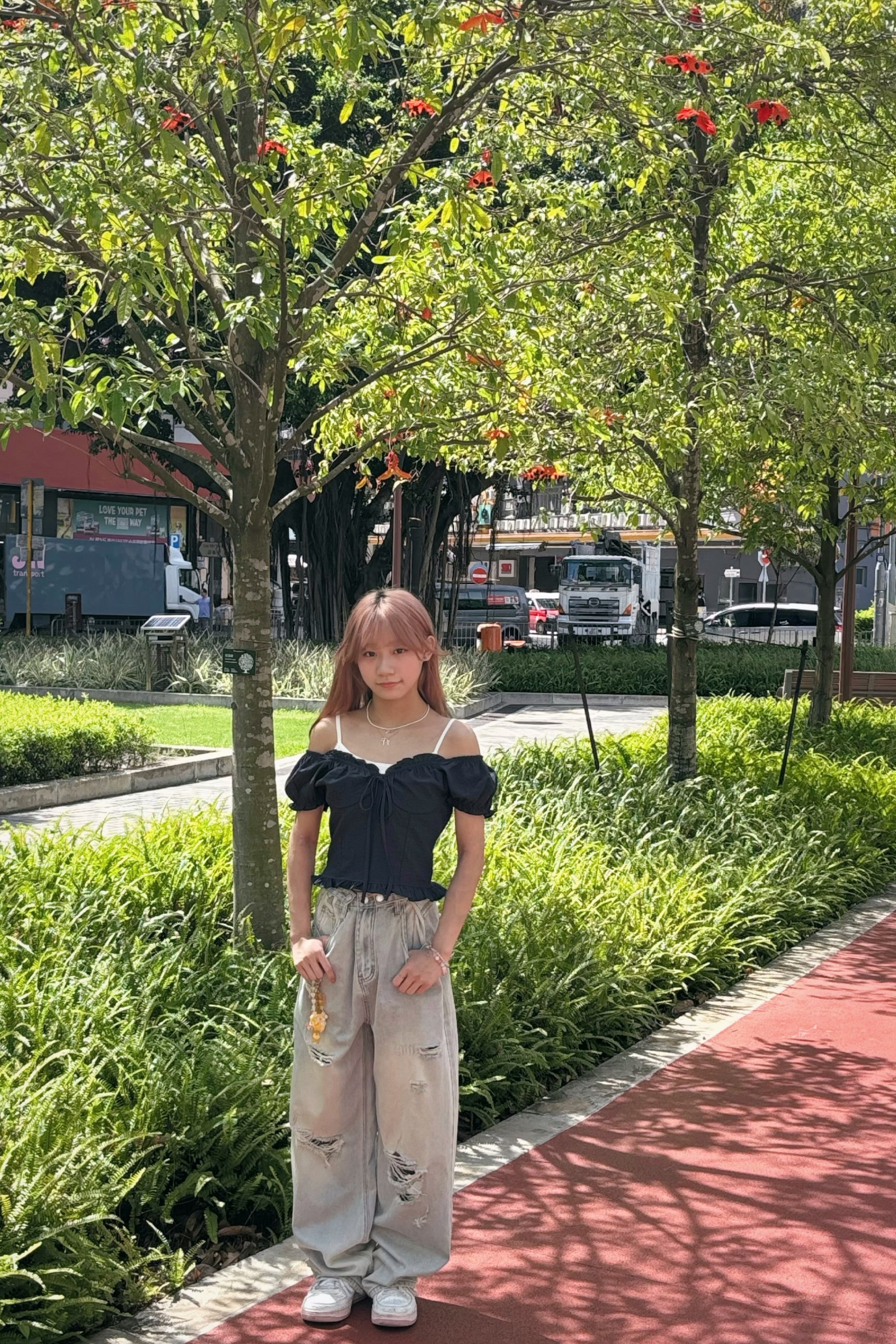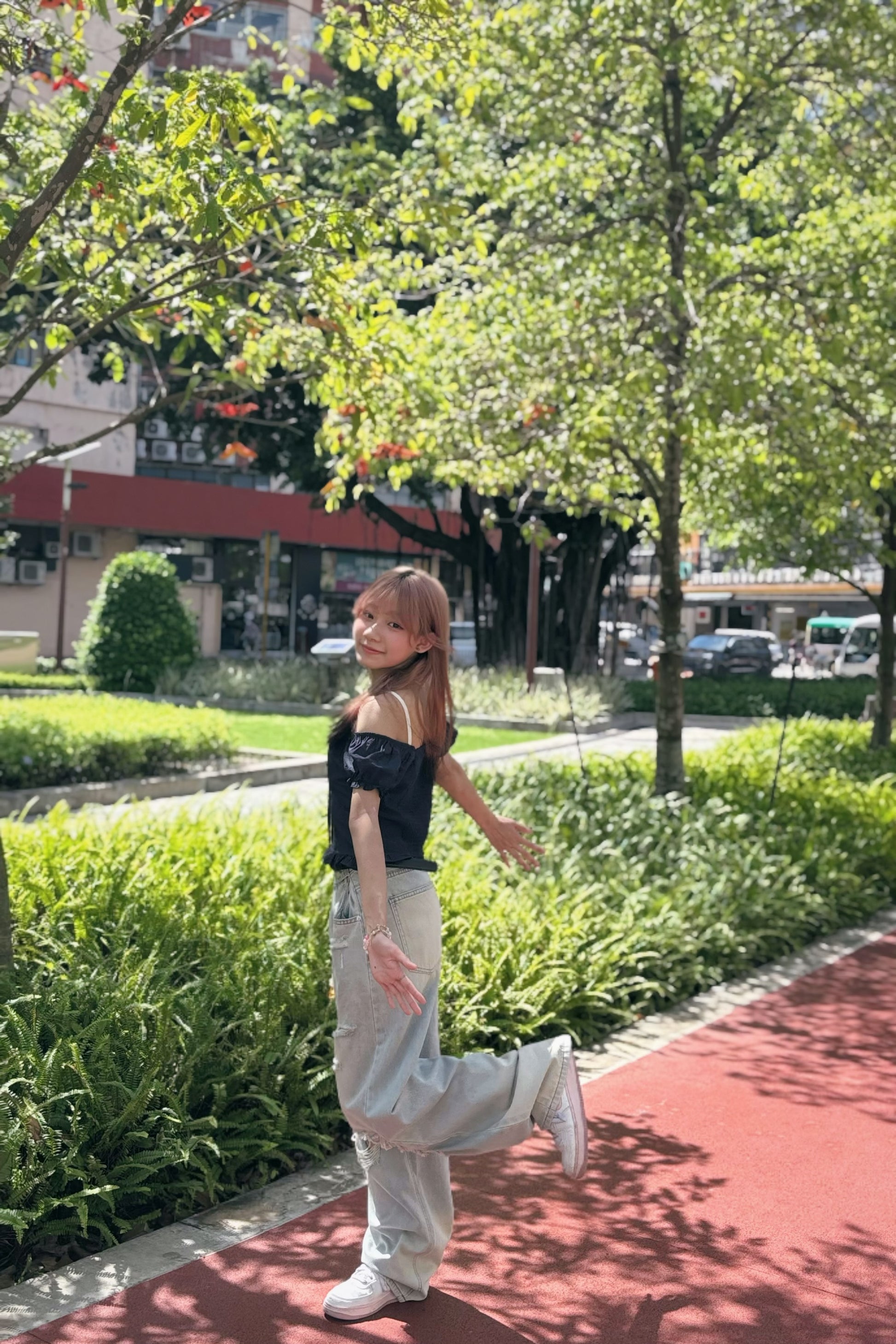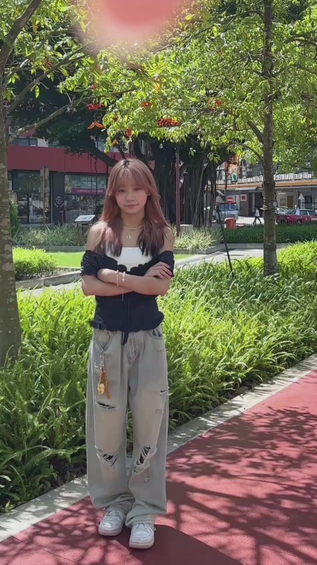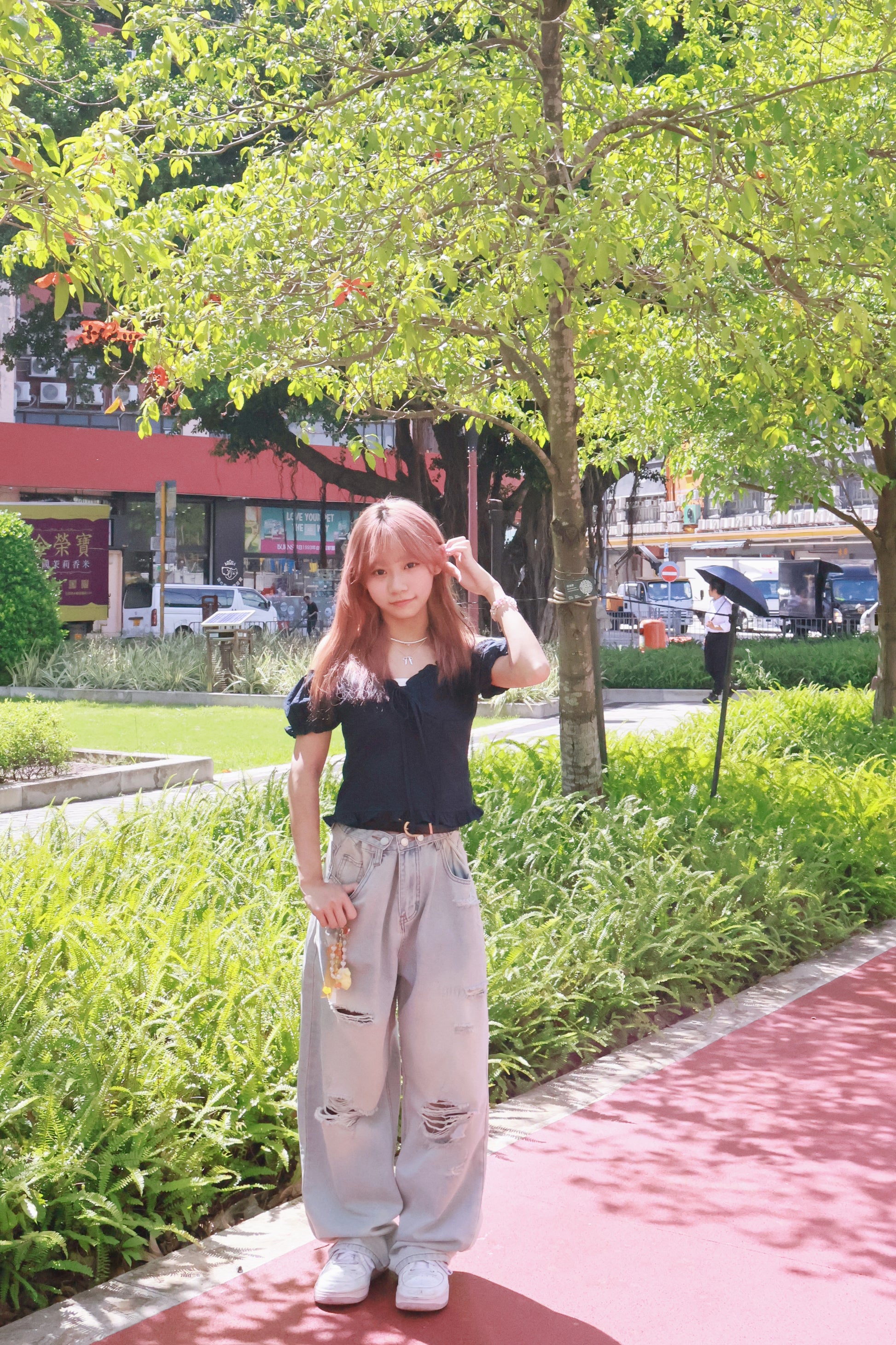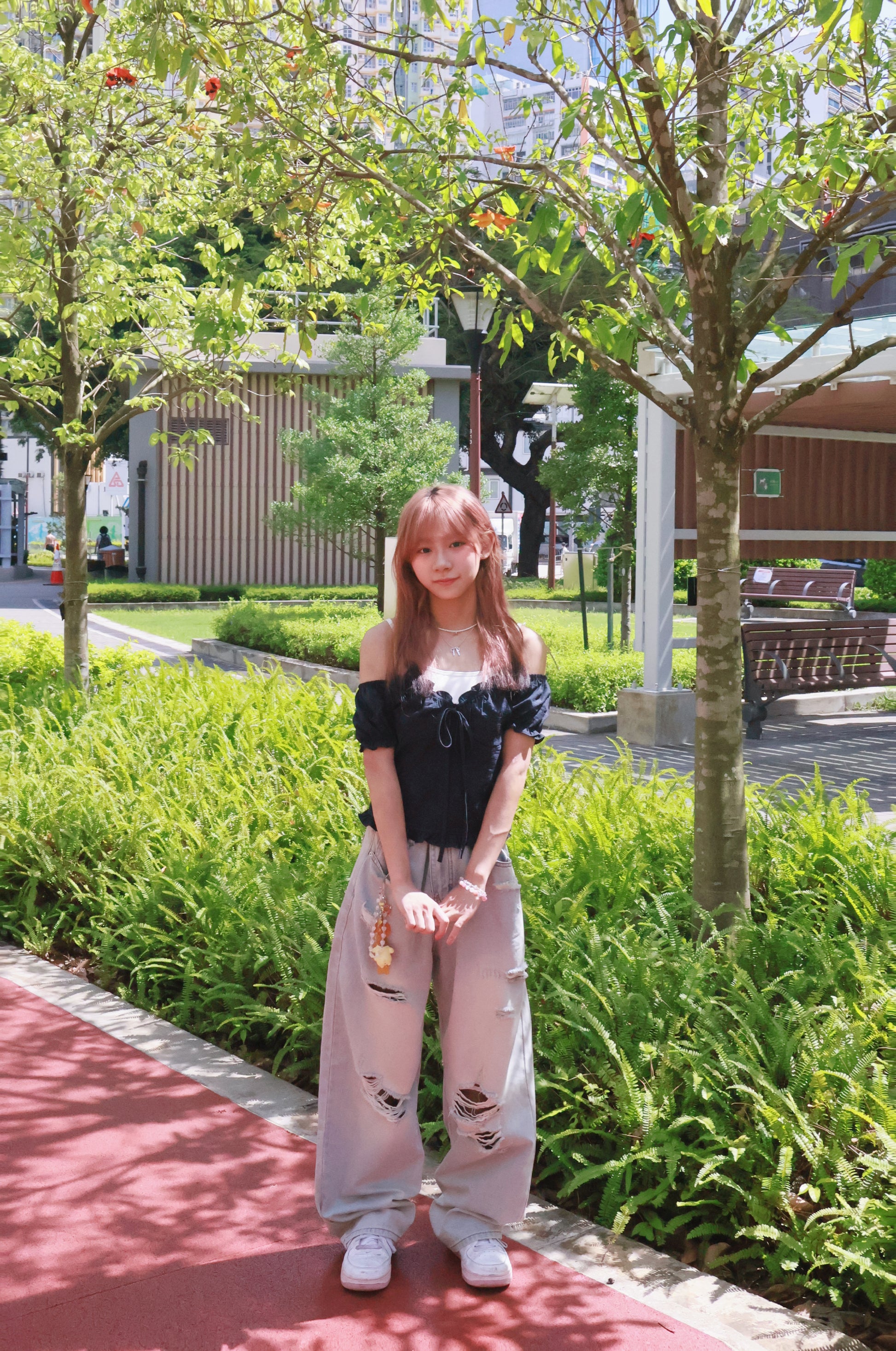 腰圍可調節破洞薄牛仔褲 S00087