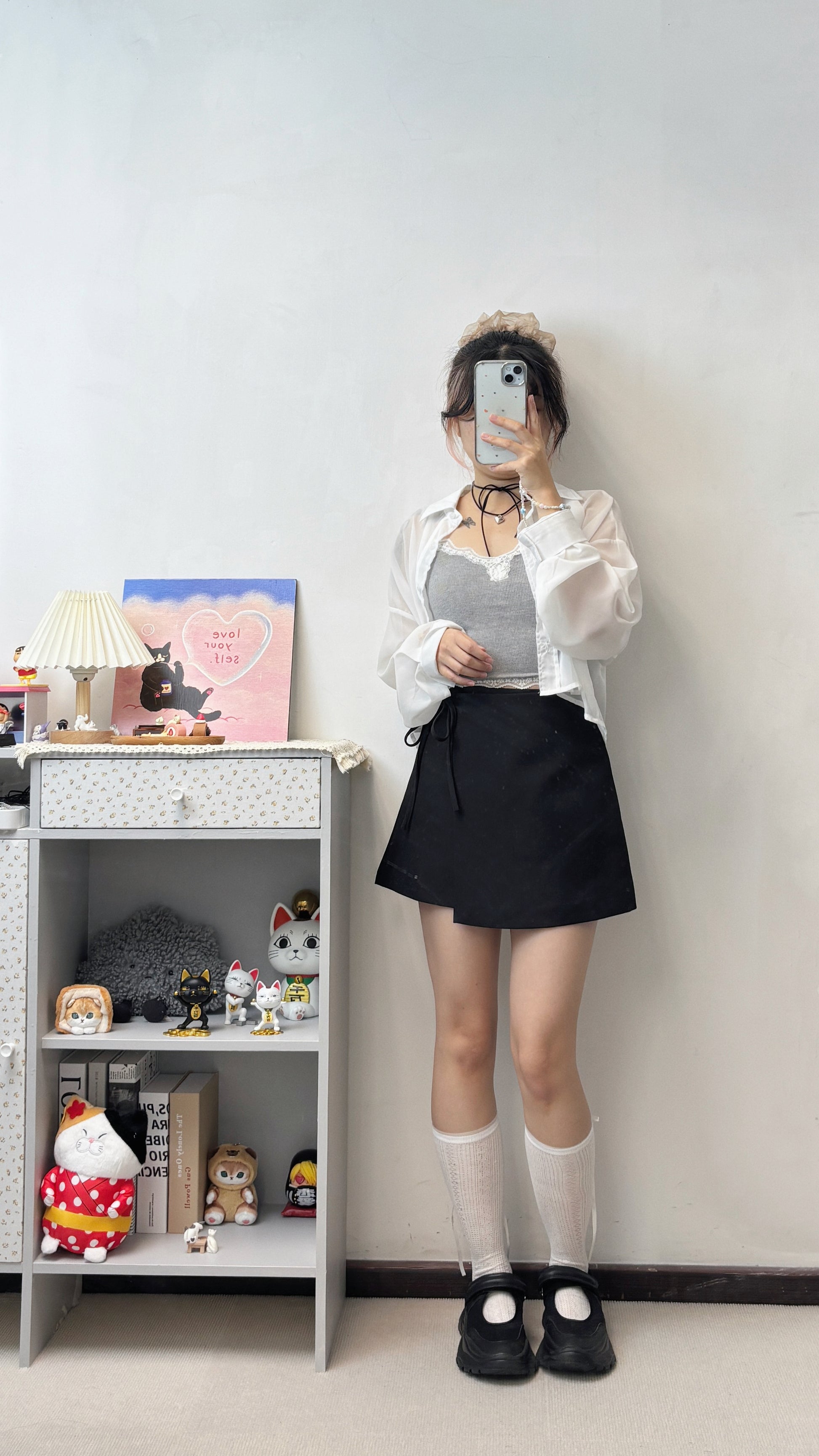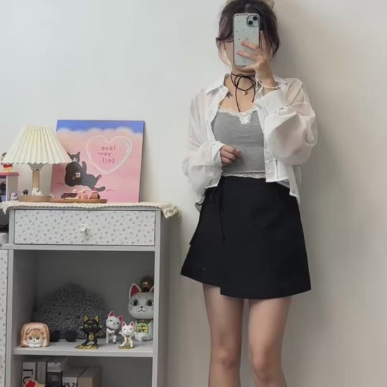 超遮肉綁帶假兩件短裙 S00097